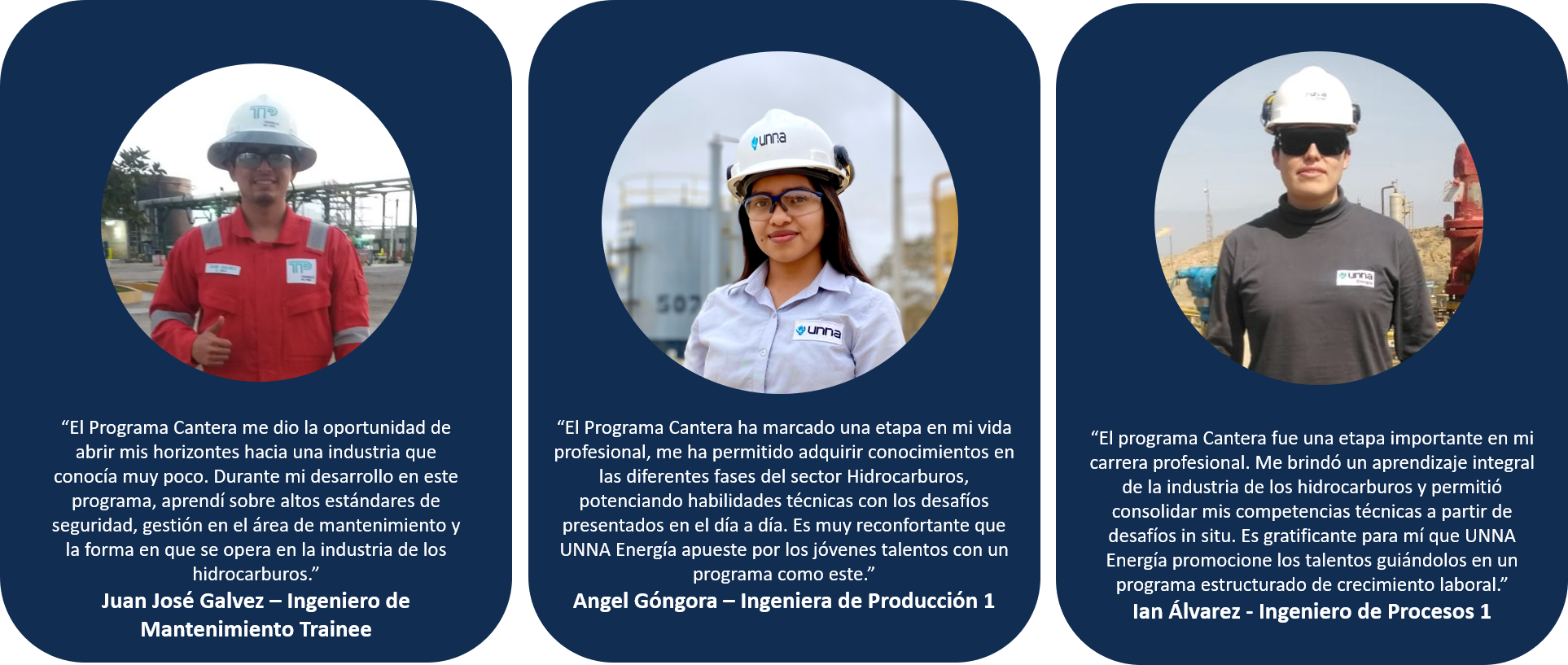 This is UNNA Energía’s recruitment program, which seeks to identify talented young people through a hands-on learning model, giving them a chance to become familiar with our company from the inside. During this stage, we expose young professionals to different experiences in the field and challenging projects. After completing the program, they may be taken into consideration for jobs in any of our three business units: Exploration & Production, Natural Gas, or Transportation & Distribution.